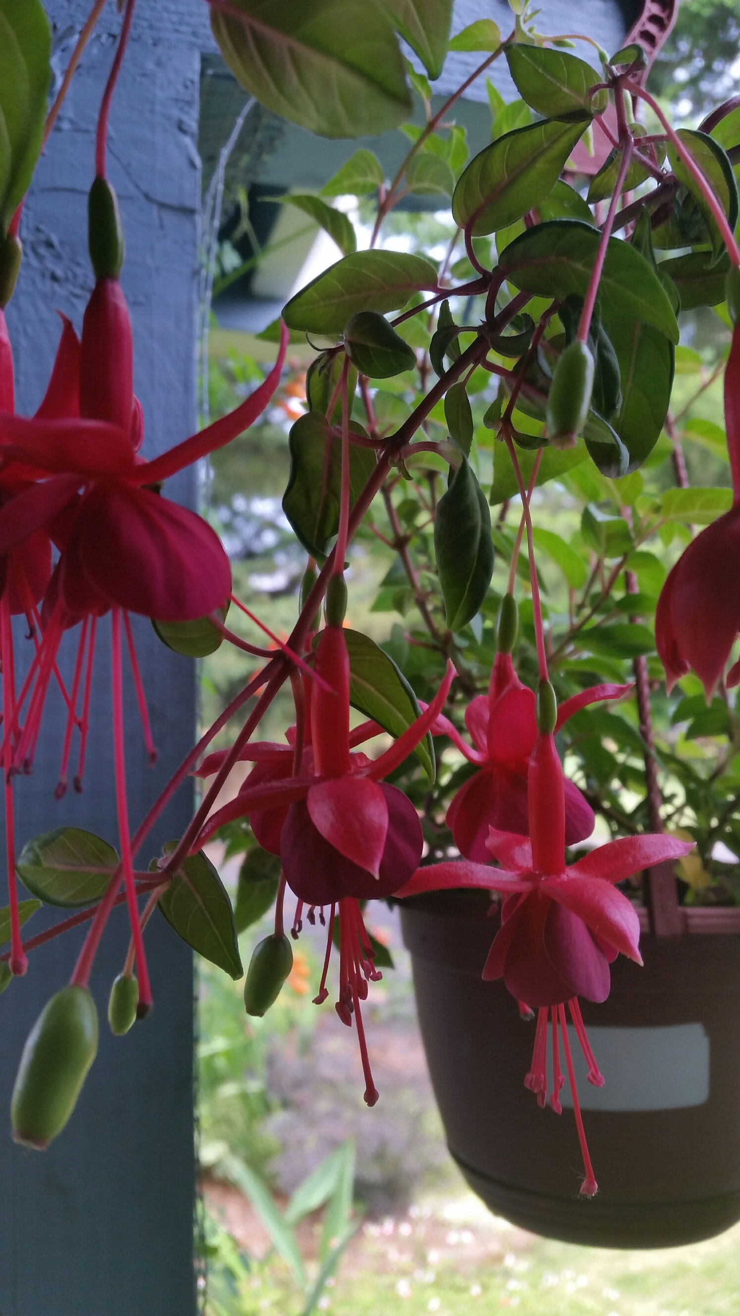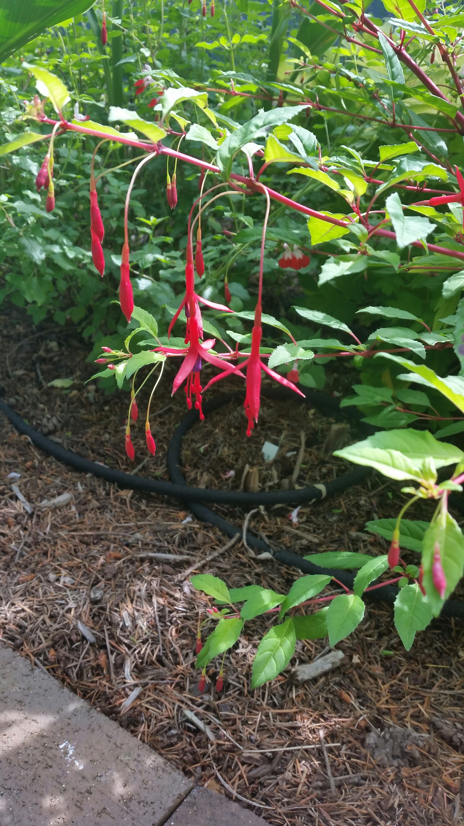 This fuchsia is a hardy variety sold under the name ‘David Palmer’. It is extremely vigorous and would probably become a small tree if I left it alone.