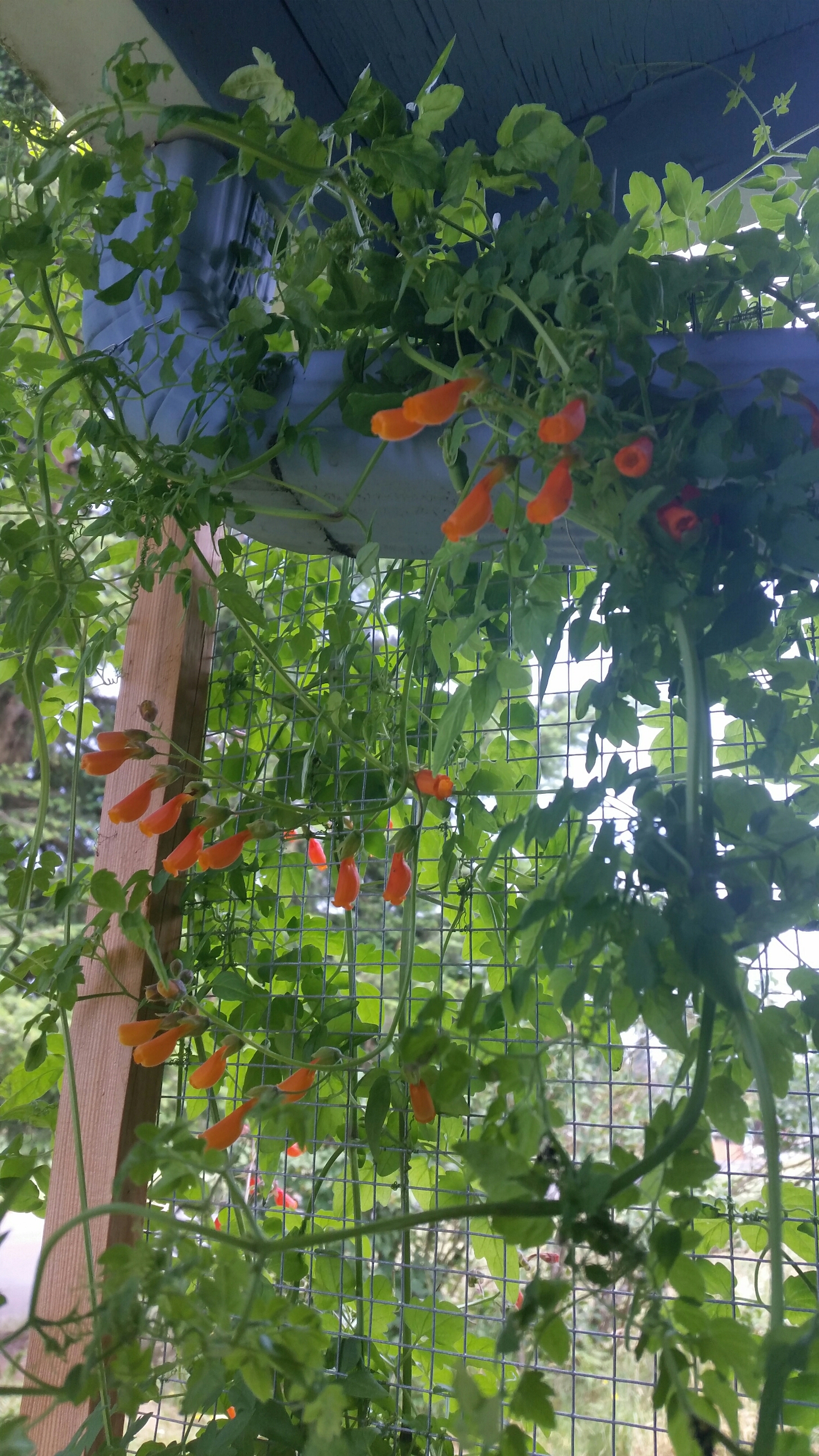 Eccremocarpus scaber has been blooming since early in the spring, and now there are seed pods all over the vine.