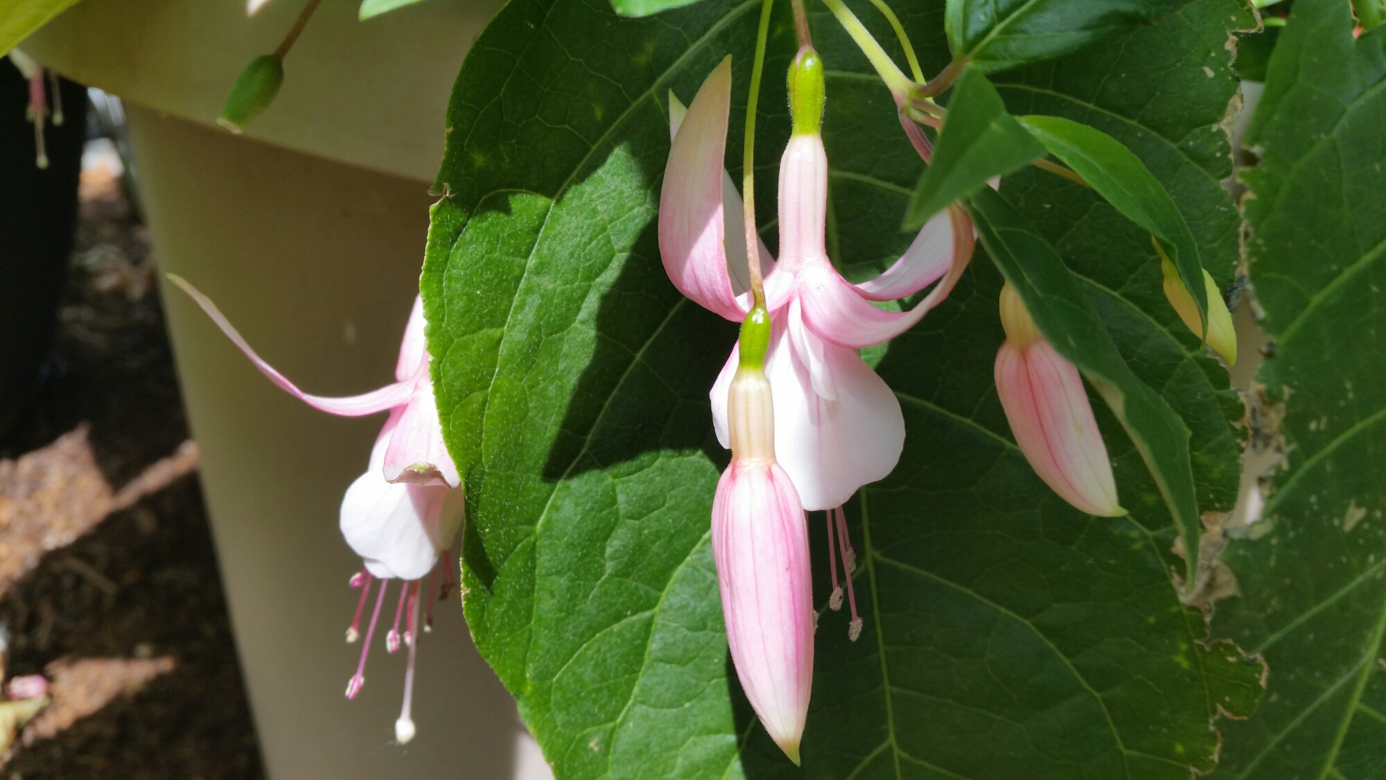 Swanley Gem is another hardy fuschia. Much smaller than ‘David Palmer’ overall, the flowers are monstrous comparatively.