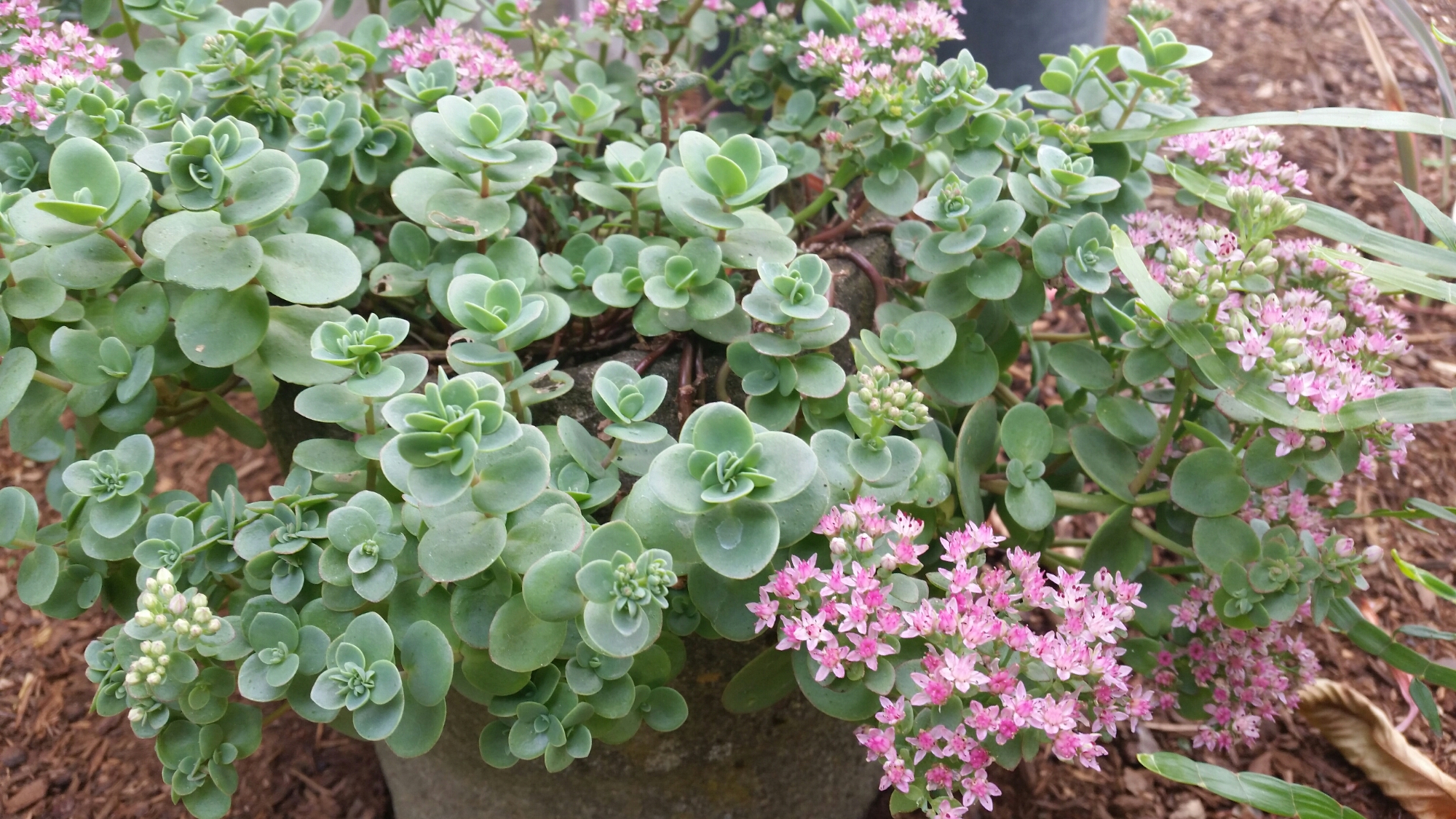 While I am not a huge fan of ‘Miss California’, it was also just a dollar. I needed something to fill in the pot underneath a brugmansia, and I thought it wouldn’t hurt. I may not replace it if it doesn’t survive the winter. Maybe one of the ‘Swanley Gems’ will take its place… only time will tell.