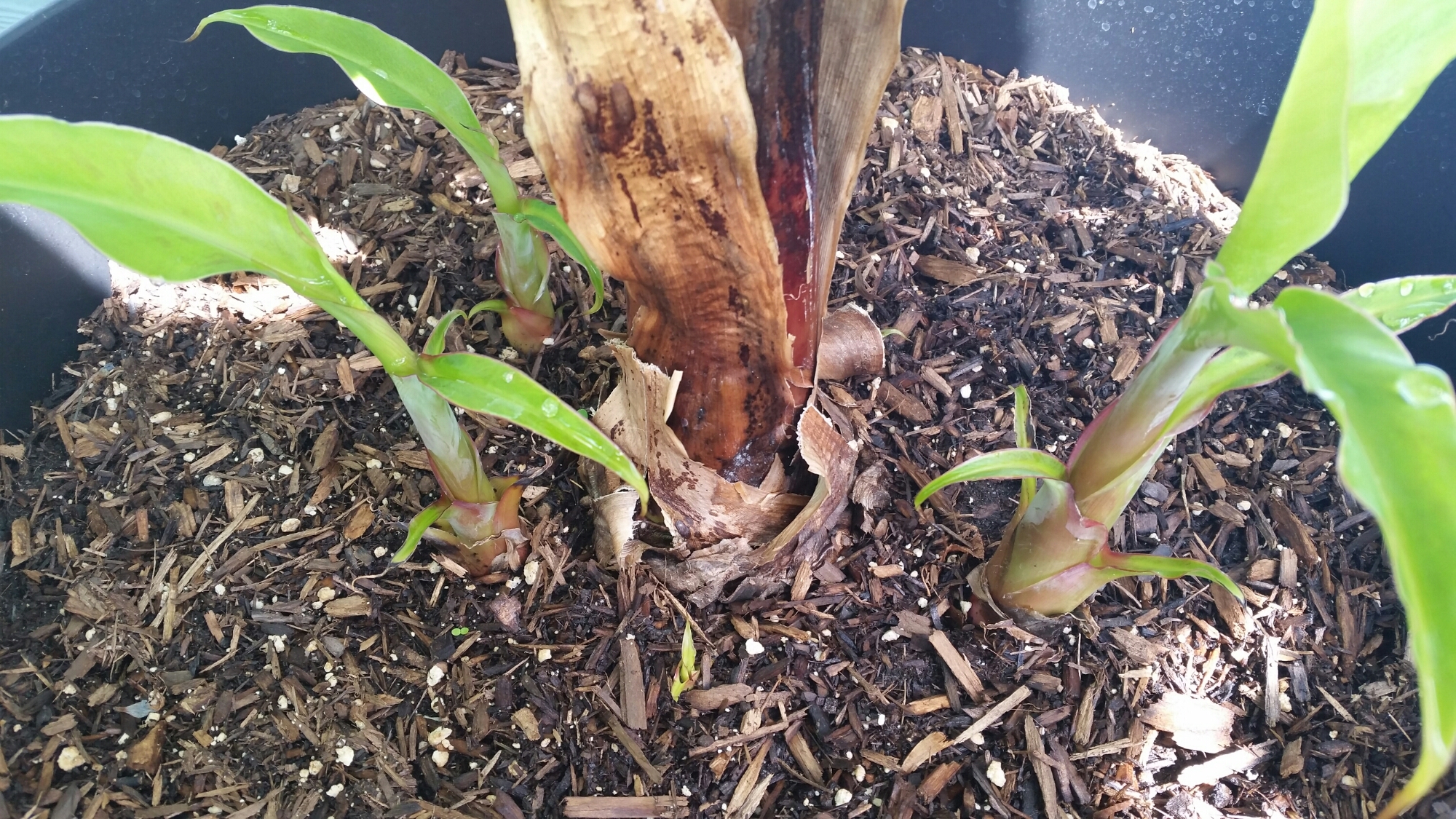 The Musa ‘Double Mahoi’ has shot out 5 pups in the last few weeks. Hopefully the banana fuel that I’ve been feeding it does the trick, and I get lots of bananas.