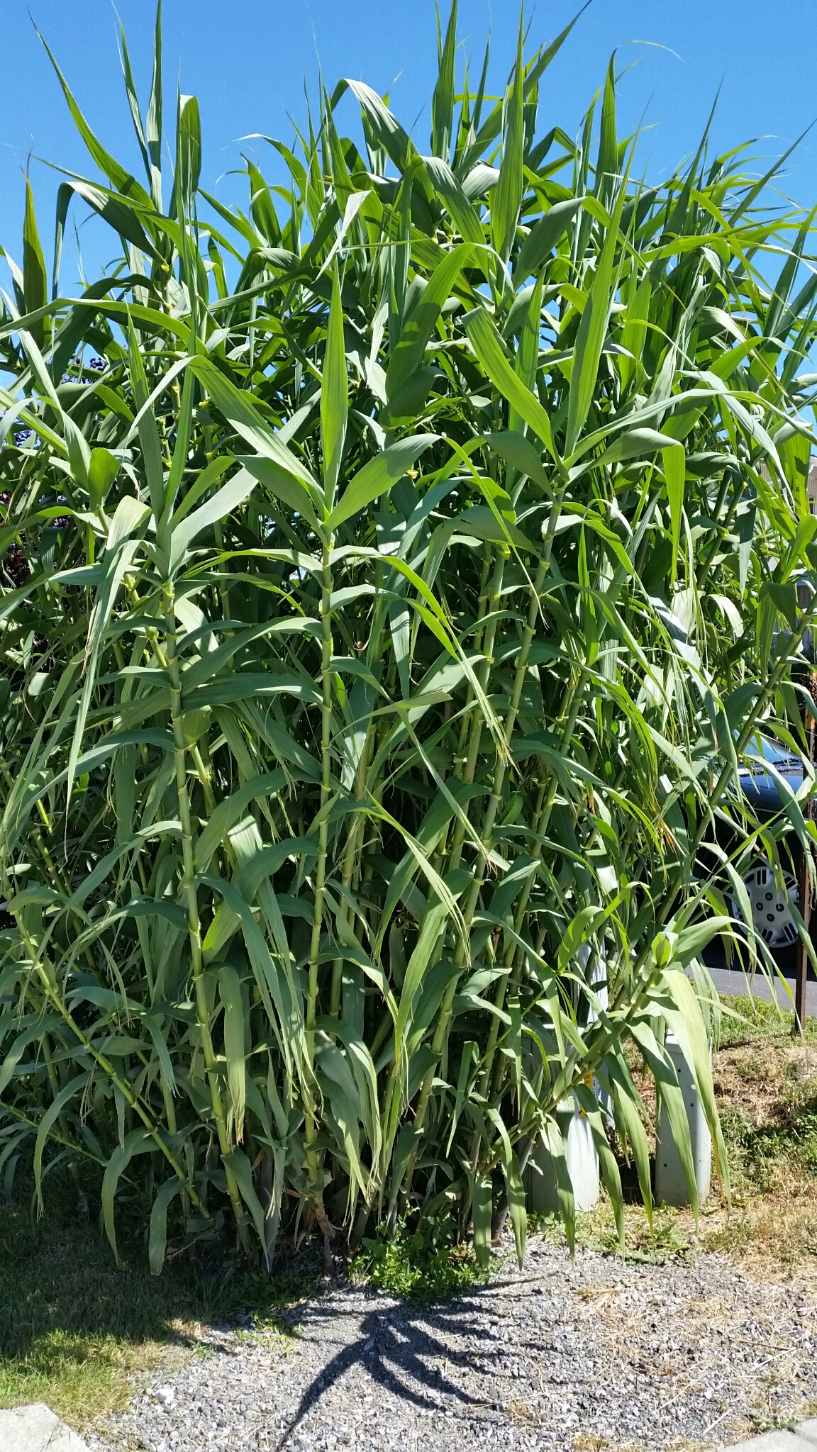 I grow Miscanthus gigantea, and I know it isn’t this one. I think this one may be a bit heftier, and is not quite so woody.