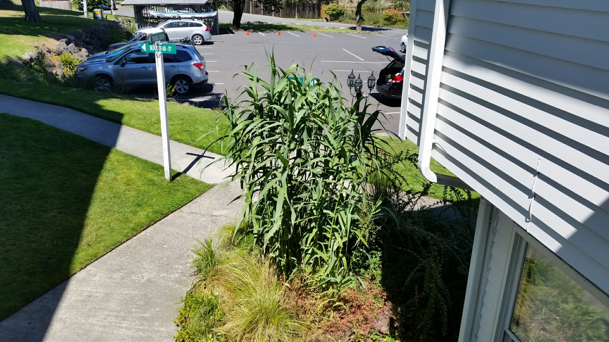 Today, not 100 feet from the ocean, I spotted this very cool plant. I think it is a grass, though it is on the scale of bamboo! Each cane is several inches in diameter, and the entire plant is situated in a moist area of the garden. I couldn’t find the gardener, so I don’t have the name of this monster.