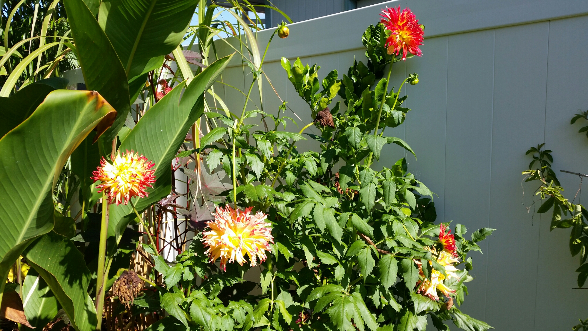 The tree dahlias have never been bigger. They are around the 15 foot mark, and have really spread out wider than any previous year. If they bloom, I will have hundreds of blooms for sure. They are massive!
