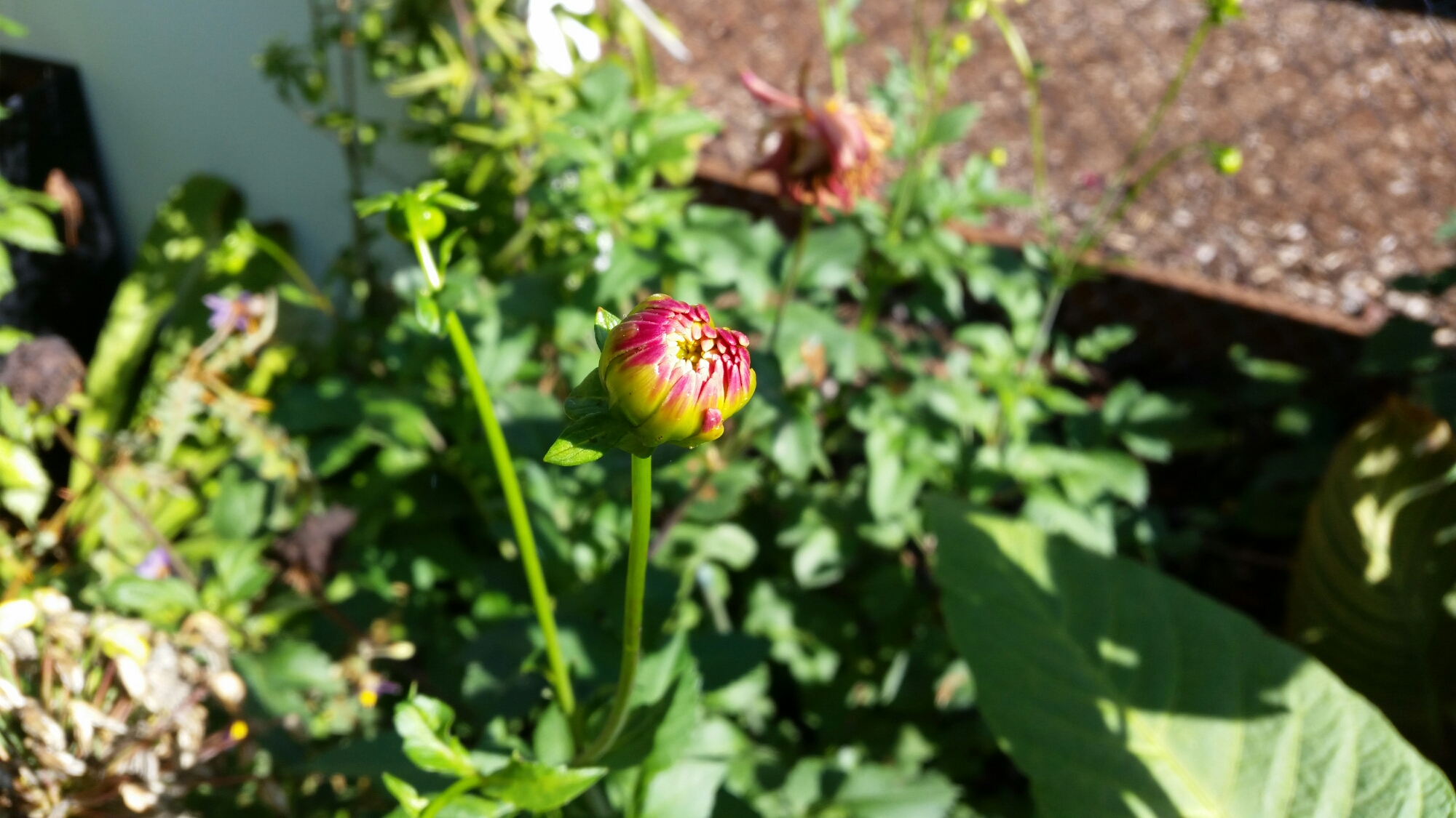 Dahlias are going strong as well. Pinelands Pam looks great in front of cannas and a kaffir lime tree.
