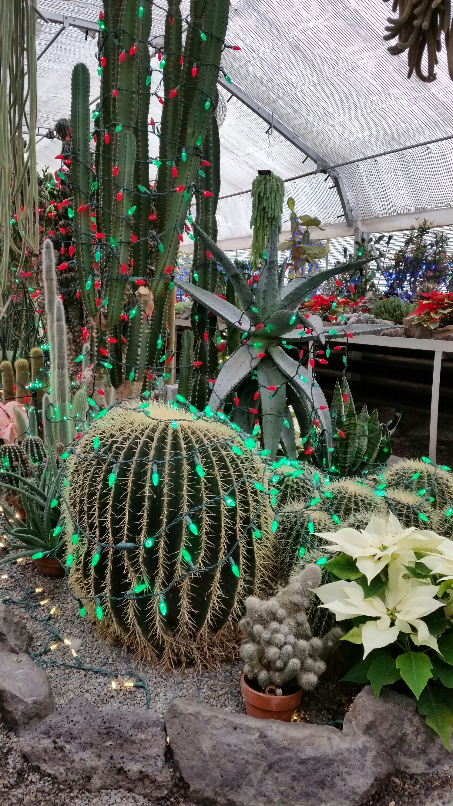 Recently re-planted, it houses plants that inspired me to get into the plant hobby world. It has changed much since I first started visiting, and since I lived in Spokane. Not quite as much of a jungle as it used to be, it is still impressive. As a nice celebration of the holidays, Christmas lights are strung up and around the plants, trees and cacti in the greenhouse.