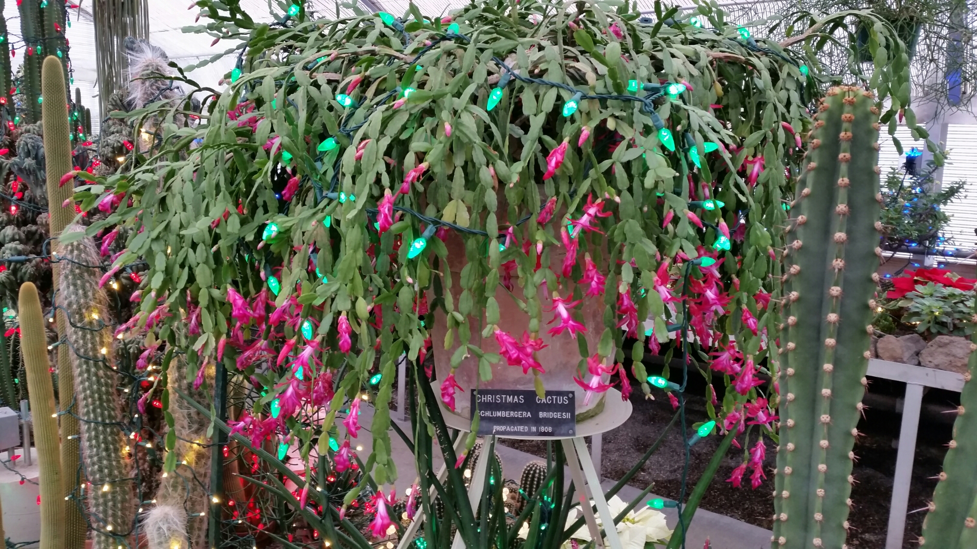 The cacti house is probably the easiest area to put lights up, and the most difficult to remove. Apparently is take 2 staff members almost 3 weeks to completely put up all the lights in the conservatory. I bet it takes just as long to remove them from the cacti!