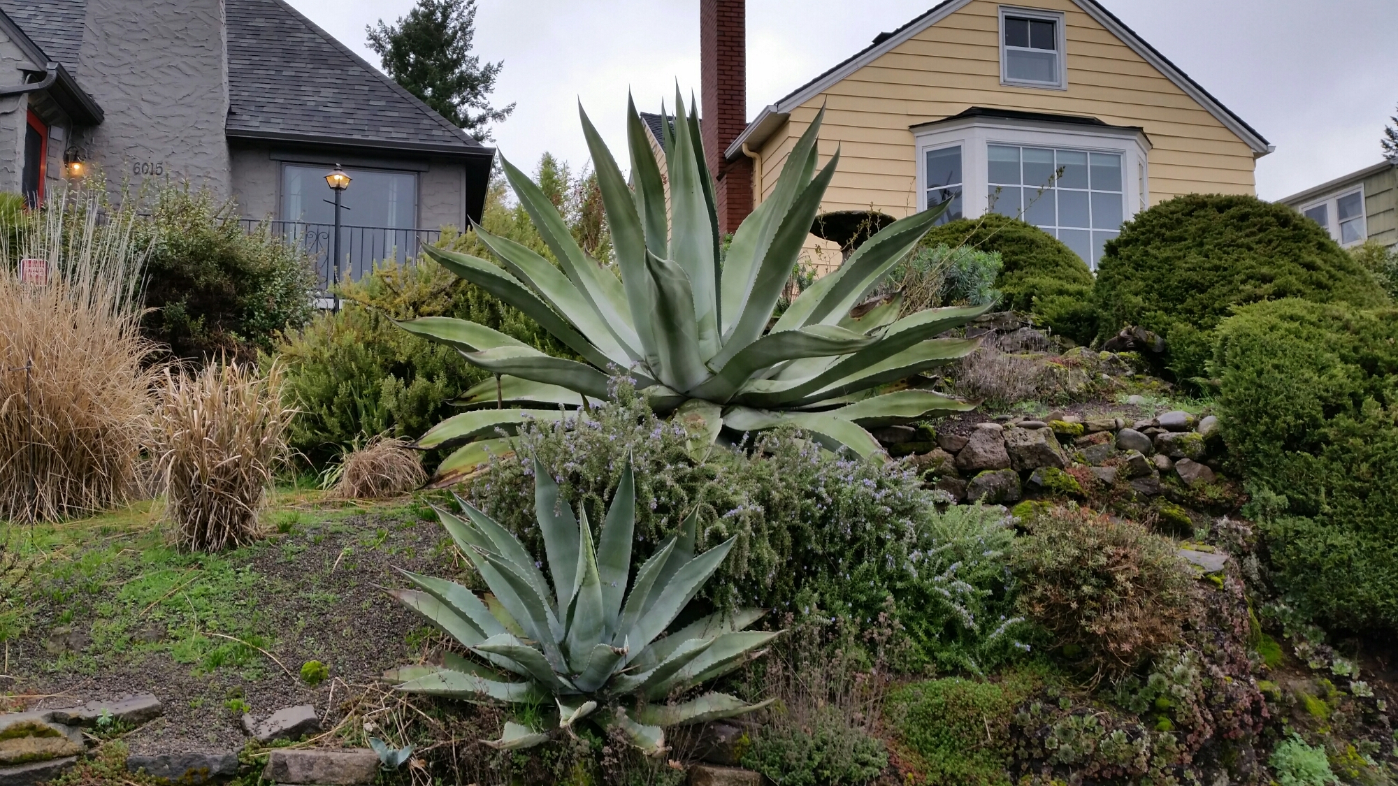 Of all the possible landscape plants that I would normally associate with a mature PNW garden, the agave is last on that list. I’ve seen plenty agaves in the Portland/Vancouver area, but they have been in pots or have been fairly small for the most part. Today, I came across a pair of agaves in a Portland garden that were as big as the largest agaves I saw at the New Orleans Botanical garden. Absolutely massive!