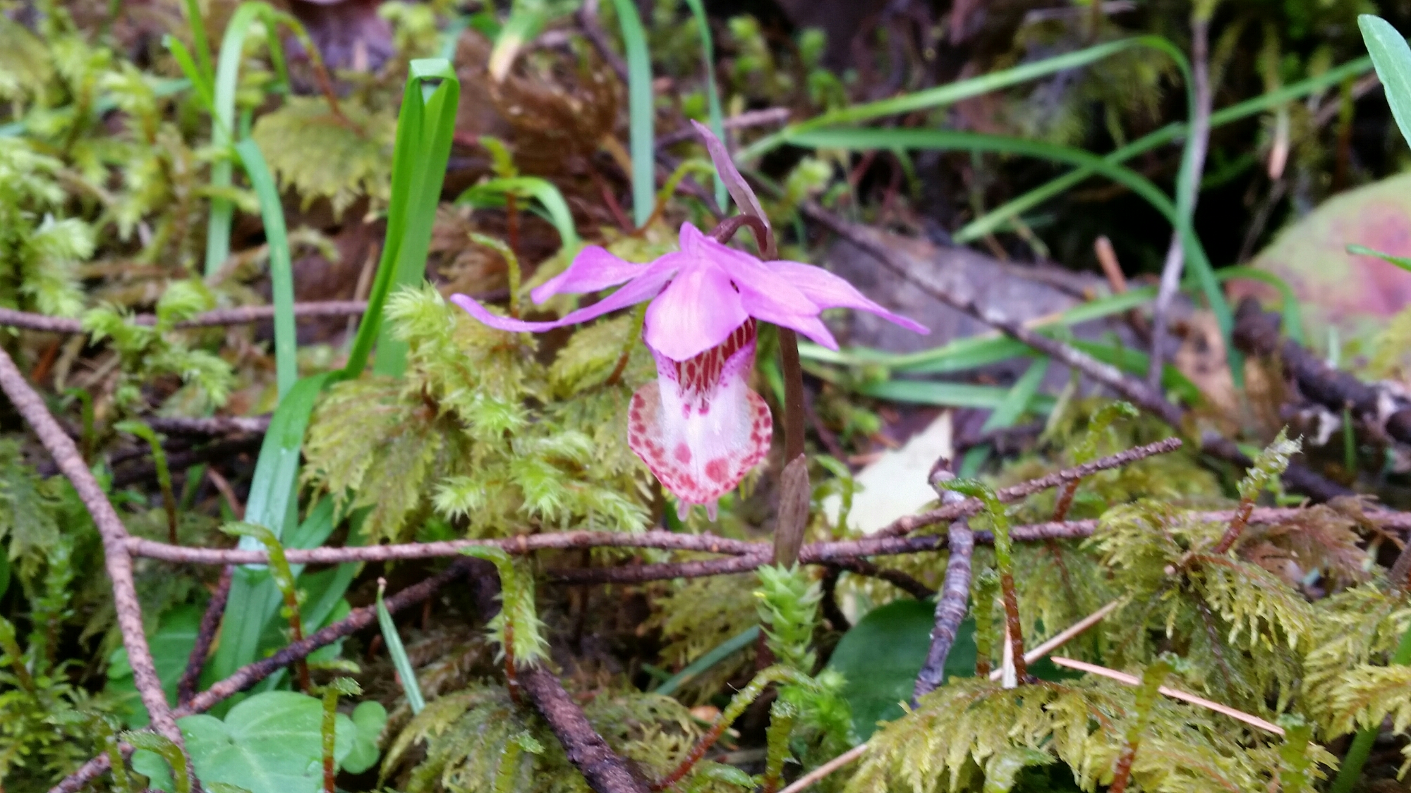 I found a Calypso bulbosa var. occidentalis (Calypso Orchid, or Venus’s Slipper) the other day! It’s the Pacific Northwest’s only native orchid, and is only found in undisturbed areas with lots of thick, moist moss. It’s a terrestrial orchid, not an epiphytic orchid. We don’t have those, unfortunately. I’ll let the photo do the rest of the talking.