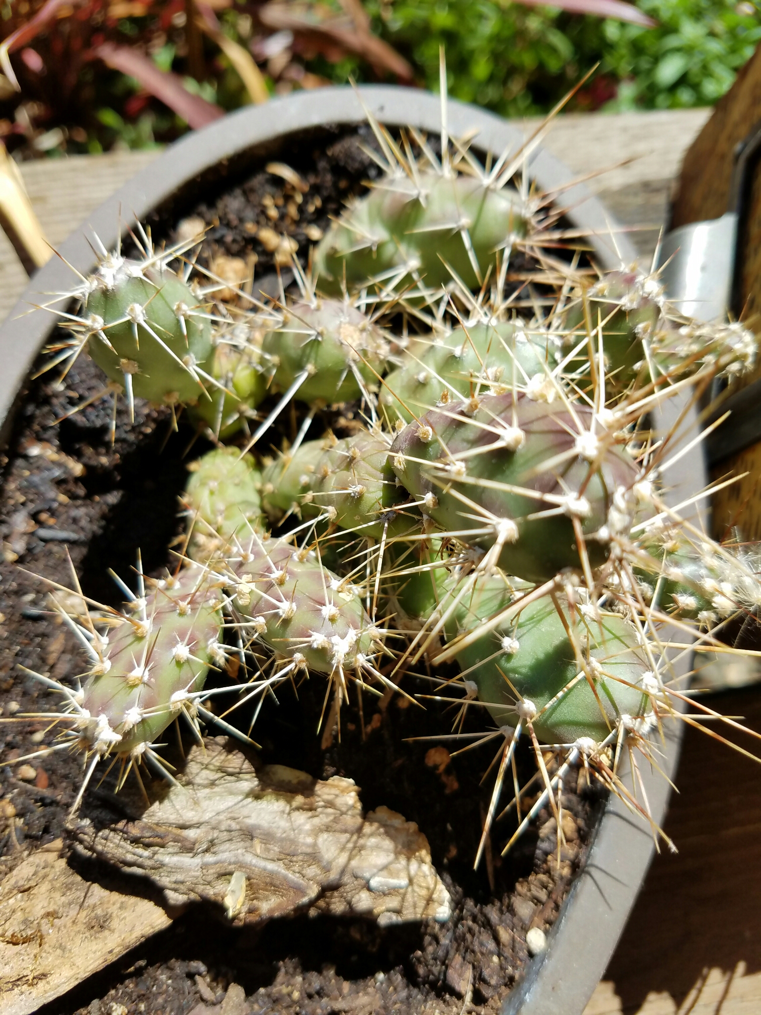 Opuntia fragilis, a native of Washington. Spiky, and surprisingly non-fragile. I think the amount of sunlight it has been getting has turned the pads a little red, and really puffy.