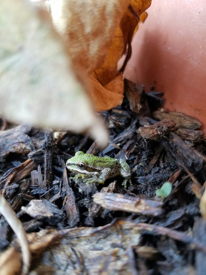 A frog decided to visit the garden! I bet the poor little thing was tired of getting buzzed by wasps as they looked for water.
