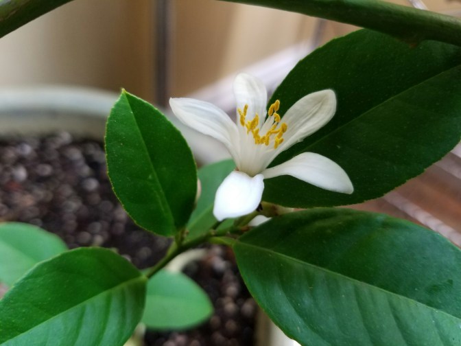 I think it probably has something to do with my fertilization regimen (or lack thereof). What I probably need to do is get some low nitrogen liquid fertilizer to dose as soon as I see buds appearing. At any rate, I’m happy that I’ve been able to keep this lemon tree alive and producing fruit for a few years.