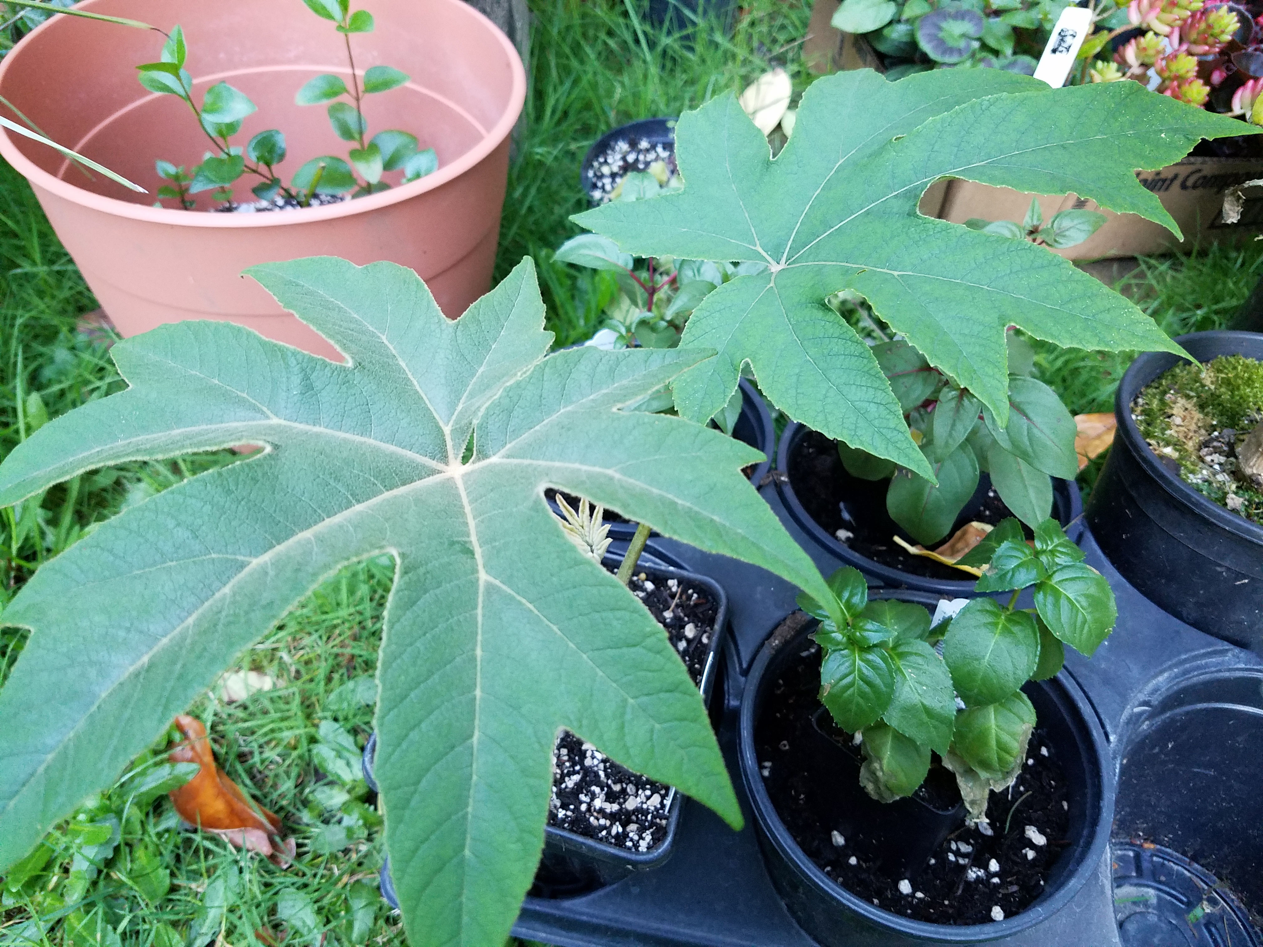 Speaking of big leaves… I managed to get another Tetrapanax papyrifera ‘Steroidal Giant’ last weekend. I love the leaves!