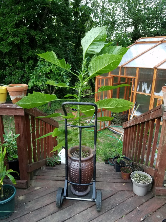 The surest way that I can get ‘Charles Grimaldi’ to bloom, or at least form buds, is to force it to branch. I could pinch the growth tip, but then I would lose overall height (and those awesome leaves). I don’t want to do that to a new plant. So… I just have to wait until it gets tall enough to start branching on it’s own.