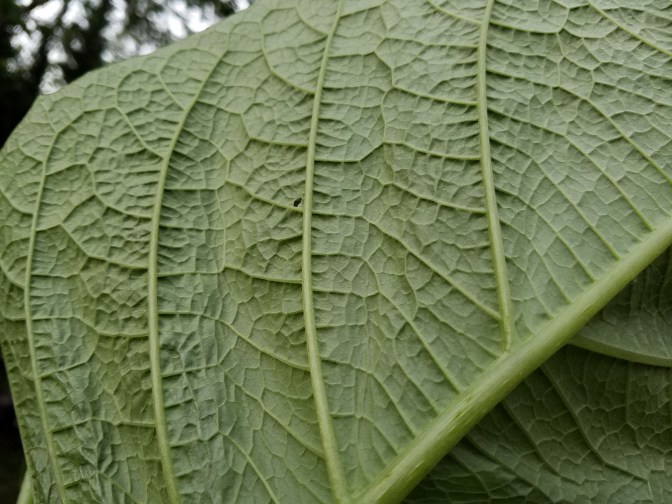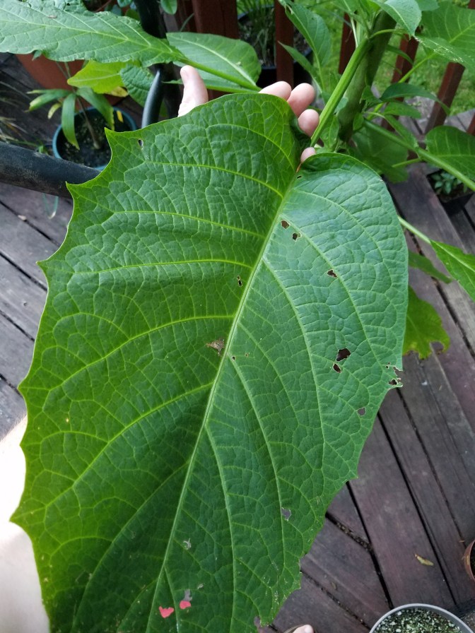 If it weren’t for those darn earwigs, this leaf would be even more impressive. As it is, I think it’s great. It is longer than my forearm!