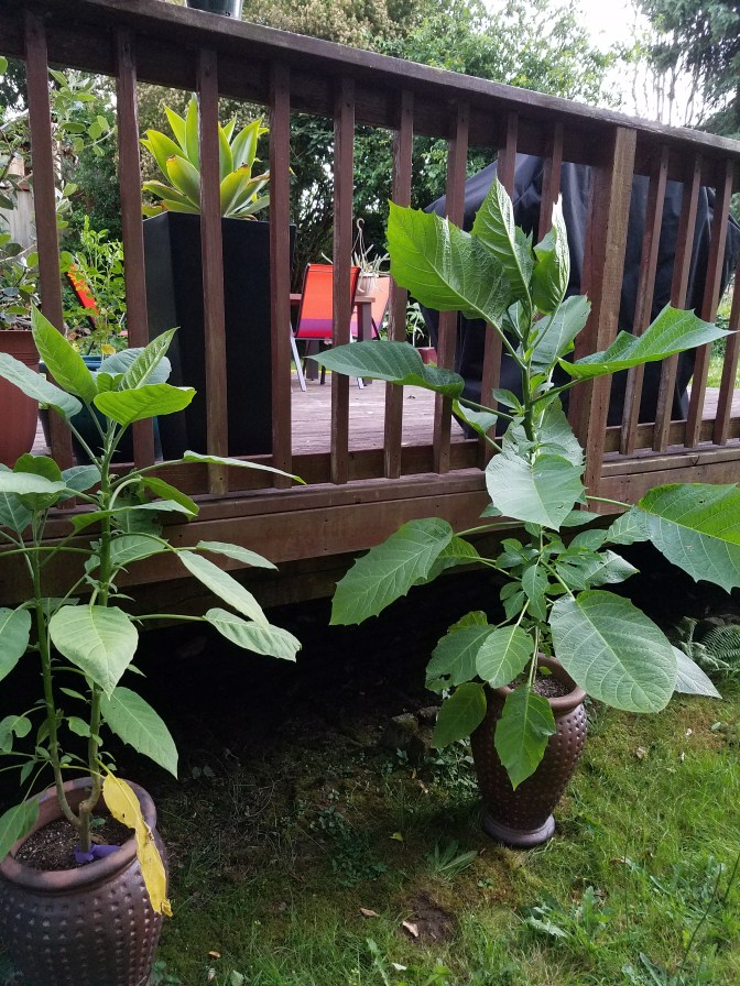 Next year, I hope to have many more brugmansia. I plan on propagating ‘Charles Grimaldi’ like crazy, and hopefully coming across some ‘Rhapsody’ again soon. Have you figured out that ‘Charles Grimaldi’ is my favorite brugmansia yet? I love those giant leaves! It has only been 2 years since I had an established brugmansia garden, but it feels like forever. Especially this time of year!