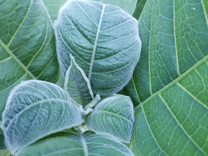 The underside of the leaves isn’t as smooth as the top, by any means. In fact, those leaf veins are bigger than the stems on most of my fuchsias.
