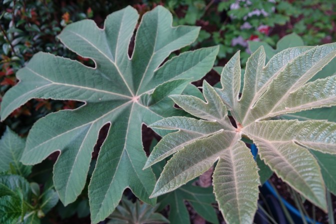 Tetrapanax papyrifer leaves are over a foot wide, right out the gate this year!