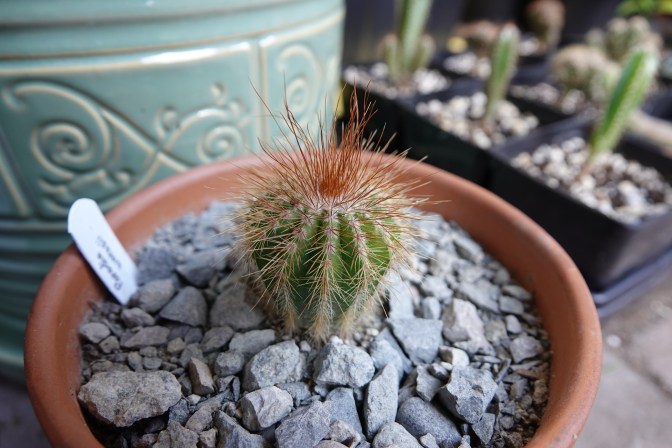 This little guy is Parodia warasii. Not a fast grower, but charming nonetheless. Look at those red spines!